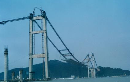 虎門大橋地震烈度六度按七度設防,橋位處設計風速為61m/s,主航道橋為跨徑888m的單跨雙鉸加勁鋼箱梁懸索橋,索塔基礎根據不同的地質條件修建,這座橋梁在拼裝過程中采用了安全渡臺風的技術措施,保證了大橋的抗風穩定性,還采用了地下連續墻防水技術,極大解決了懸索橋西塔基礎巖面嚴重不平的技術難題。大橋在修建過程中還成功研制出了特大鋼箱梁吊裝的液壓千斤頂,用于提升式跨纜吊機和緊纜機等,液壓千斤頂的使用極大的提高了生產效率,解決了人力不足等問題,為虎門大橋的修建做出卓越貢獻。