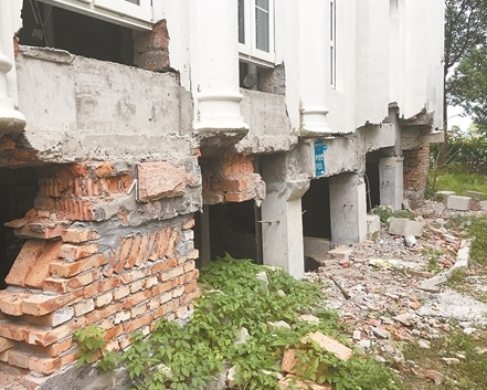 椒江太陽城月亮灣別墅小區(qū)修建于2008年,距今已有20來年,業(yè)主認為房屋建造質(zhì)量較差,居住多年后出現(xiàn)房屋沉降、傾斜等現(xiàn)象,遇到下雨天還會導致房屋被泡,因此使用千斤頂將別墅進行抬高。