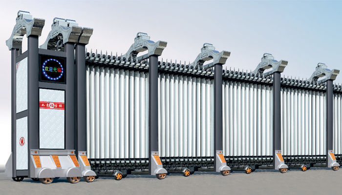 8.抗風結構裝置不但有很強的抗風性能,能確保電動門在強風吹襲下仍能照常運行,其結構能有效減小抗風鉤與導軌的摩擦阻力,提升門體的運行效率。